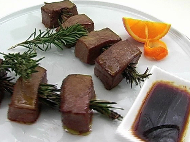 Неожиданный рецепт приготовления тунца.Состав:тунец — 7 кусочков;розмарин — 2 веточки;сок одного апельсина;имбирь — 1 столовая ложка;немного соевого соуса.