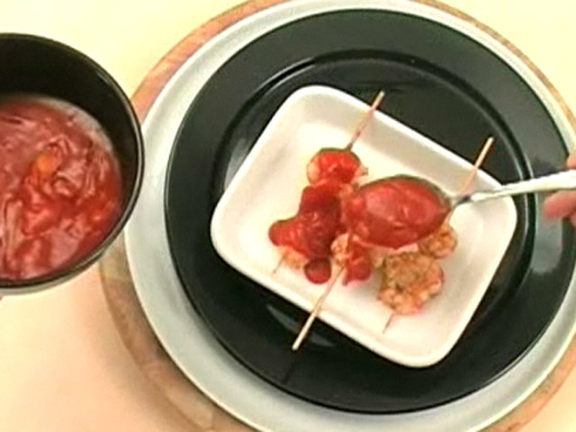 Креветки на шампурах с острым соусом
