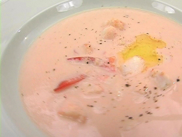 Новое звучание вкуса в креветковом супе со сливками.Состав:креветки — 200 гр;молоко — 400 гр;масло — 30 гр;лавровый лист — 1листочек;сливки — 50 гр;желток — 1 штука;бренди — 50 гр;кукурузная мука — 50 гр;белый перец, морская соль, соль с травами — по вкусу.