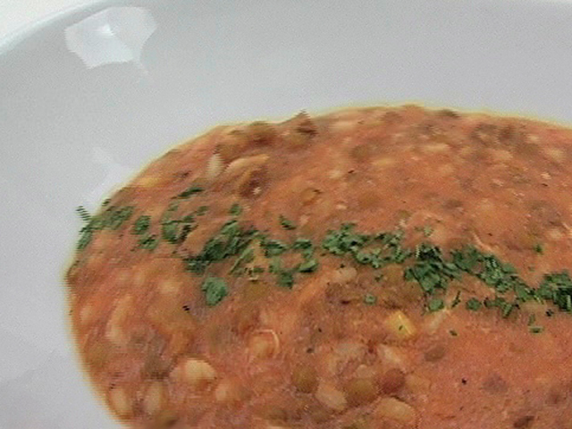 Марокканский суп. Очень вкусно!Состав:ягненок — 150 гр;вода — 600 гр;рис — 50 гр;томат — 150 гр;лук — 1 штука;имбирь — 30 грм петрушка — 1 пучок;чечевица — 80 гр;сельдерей — 30 гр;корица — 1 чайная ложка;паприка — 1 чайная ложка;тмин — 1 чайная ложка;оливковое масло, соль, перец — по вкусу.